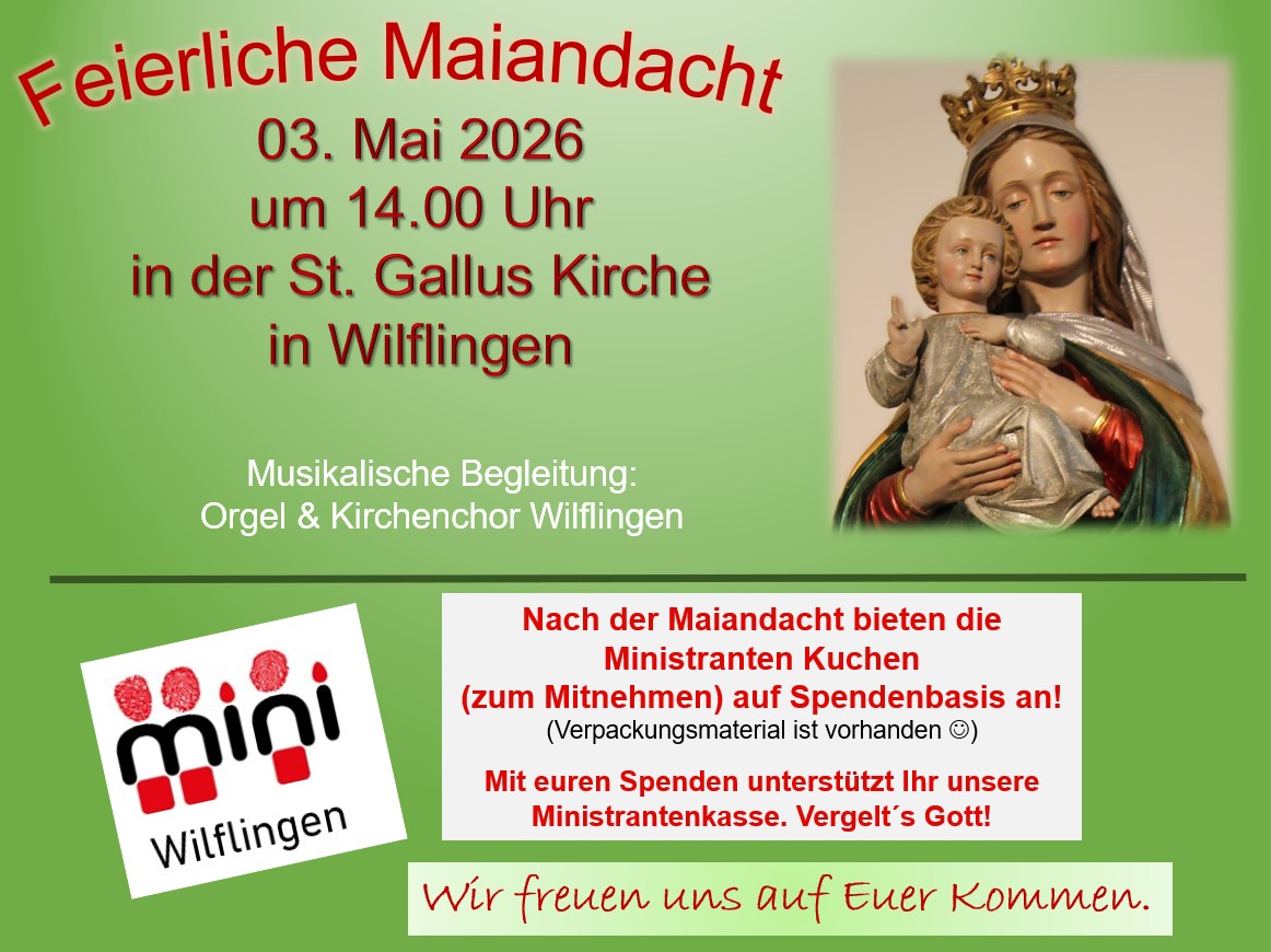 Wir laden herzlich die ganze Seelsorgeeinheit zur Maiandacht in Wilflingen ein.