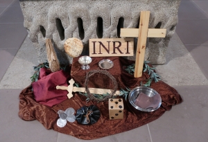 Während der Passionsgeschichte brachten Kinder verschiedene symbolische Gegenstände zum Altar, darunter einen Krug mit Wasser, eine Dornenkrone und einen Würfel. Diese Zeichen machten das Leiden Jesu auf eindrückliche Weise sichtbar und halfen, die Geschichte besser zu verstehen.