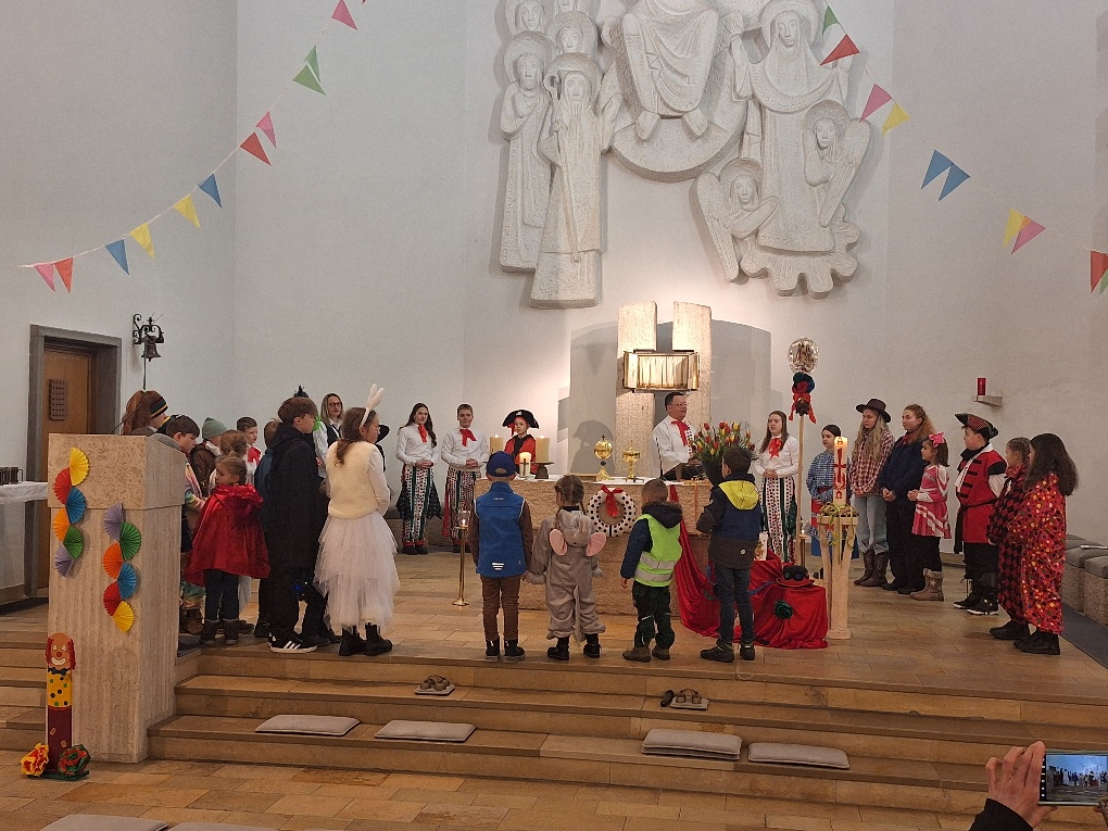 Am Fasnetsonntag, dem 15. Februar 2026, fand um 10.00 Uhr der Fasnetsgottesdienst zum zweiten Mal als Wortgottesfeier in der St. Gallus Kirche statt. Die Narrenräte zogen gemeinsam mit der Ministrantenschar und dem Wortgottesfeier-Leiter Heiko Leibold unter den Klängen des alten Jägermarsches in die Kirche ein und bereiteten den zahlreichen Gästen eine fröhliche Fasnetserlebnis.
